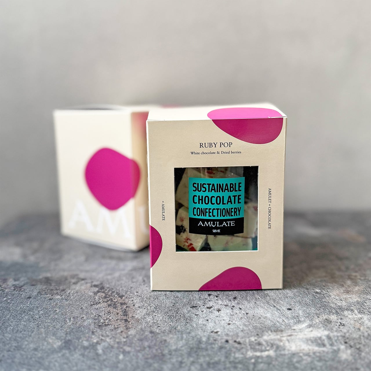 ルビーポップには、サステナブルな方法で調達した材料のみで作られたスイス産のクーベルチュールを100%使用しております。